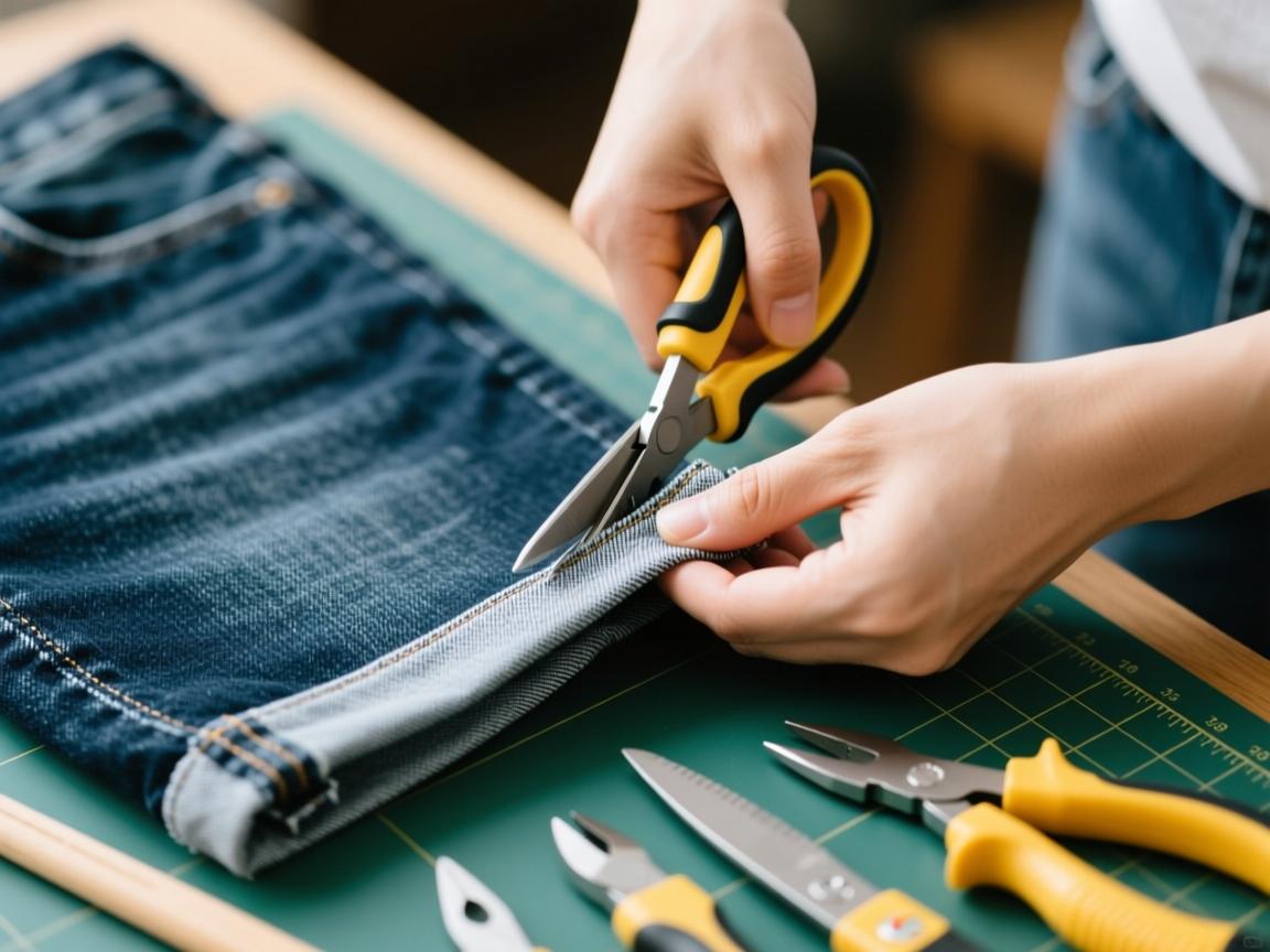 用普通锋利的剪刀沿标记线剪断后,裤边会留下自然的毛须。你可以用拆线器或绣花针轻轻挑刮布料边缘的横向纱线,形成更明显的流苏状毛边,这是一种很常见的牛仔裤脚处理方式。