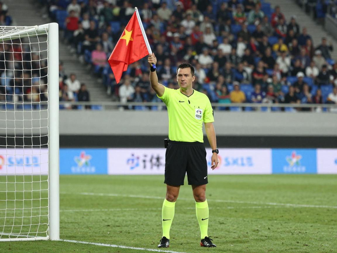 当足球整体越过球门线,且进攻方没有违规行为时,边裁需要明确向主裁判示意进球有效。这时,边裁会使用一种非常明确的旗语:臂平举直接将旗指向中圈。这个动作清晰地向主裁判和全场表明,球已经合法地进入了球门。