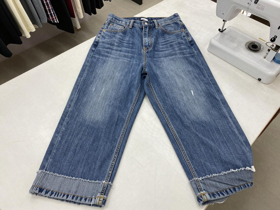 保留原边(有时也称为“修圆边”)的工艺则要复杂一些,尤其对于有特殊设计或洗水效果的牛仔裤裤边来说,这种做法能最大程度保持裤子原有的风格。具体操作是:先仔细拆下原裤边,将裤子剪到合适长度后,再把原裤边重新缝制到新裤脚上。这样做好的裤子,裤脚处的细节和原厂几乎一致,看起来更自然、更有型。当然,因为步骤繁琐,对手艺要求高,收费也会更贵。